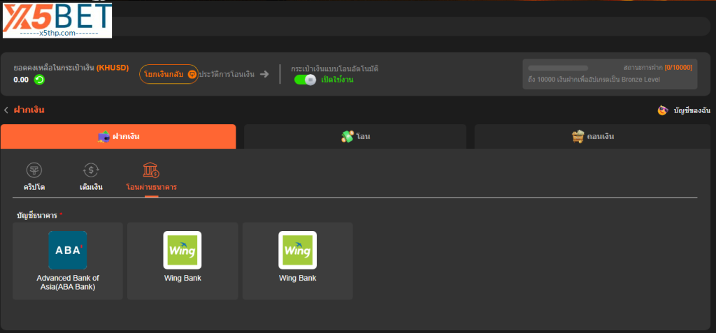 เพื่อให้มั่นใจว่าผู้เล่นจะได้รับประสบการณ์ที่ราบรื่นและสะดวกสบายในทุกธุรกรรมทางการเงิน x5bet ได้ปรับปรุงกระบวนการฝากเงินทั้งหมดให้มีประสิทธิภาพสูงสุด ทำให้ทุกการดำเนินการเป็นเรื่องง่ายและรวดเร็ว พร้อมรับประกันความปลอดภัยสูงสุด ไม่ว่าคุณจะเป็นผู้เล่นใหม่หรือคุ้นเคยกับแพลตฟอร์ม เพียงทำตามขั้นตอนด้านล่าง กระบวนการ ฝากเงินของ x5betก็จะราบรื่นในพริบตา